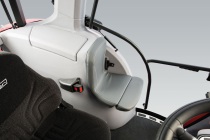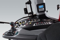 Differenzial aktiviert. Feineinstellungen von Fahrwerk oder Hydraulik werden mit Drehrad und Bestätigungsknopf am Monitor oder auf der Armlehne vorgenommen.