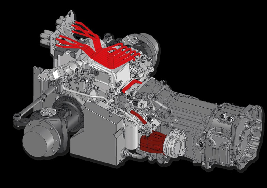 Das TMT09 ist das erste Stufenlosgetriebe, das speziell für eine Zapfwellenleistung von rund 90PS entwickelt wurde. Kompakter Leichtbau war dabei besonders wichtig. Durch die großteils mechanische Kraftübertragung mit geringem Hydrostatischem Anteil arbeitet das Getriebe besonders effizient. Gefahren wird stufenlos von -20 bis +43 km/h mit reduzierter Motordrehzahl. Die 4-fach-Heckzapfwelle mit Anlaufsteuerung arbeitet wahlweise mit 430/540/750/1000 U/min.
